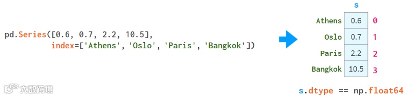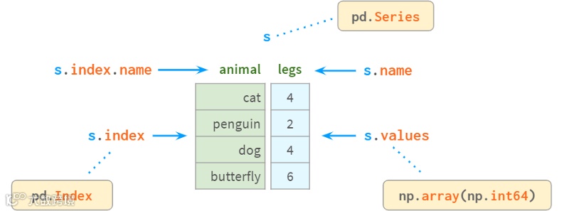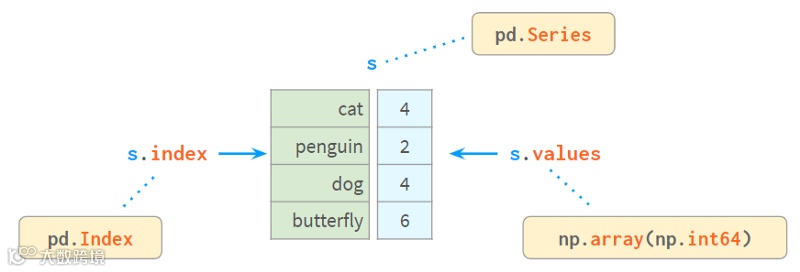 Series是NumPy中的一维数组,是表示其列的DataFrame的基本组成部分。尽管与DataFrame相比,它的实际重要性正在降低(你可以在不知道Series是什么的情况下完美地解决许多实际问题),但如果不首先学习Series和Index,你可能很难理解DataFrame是如何工作的。