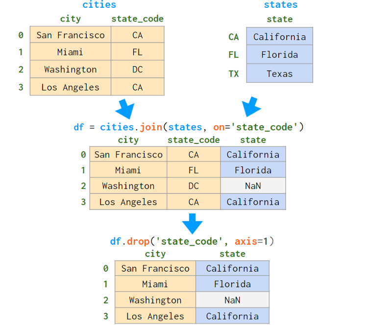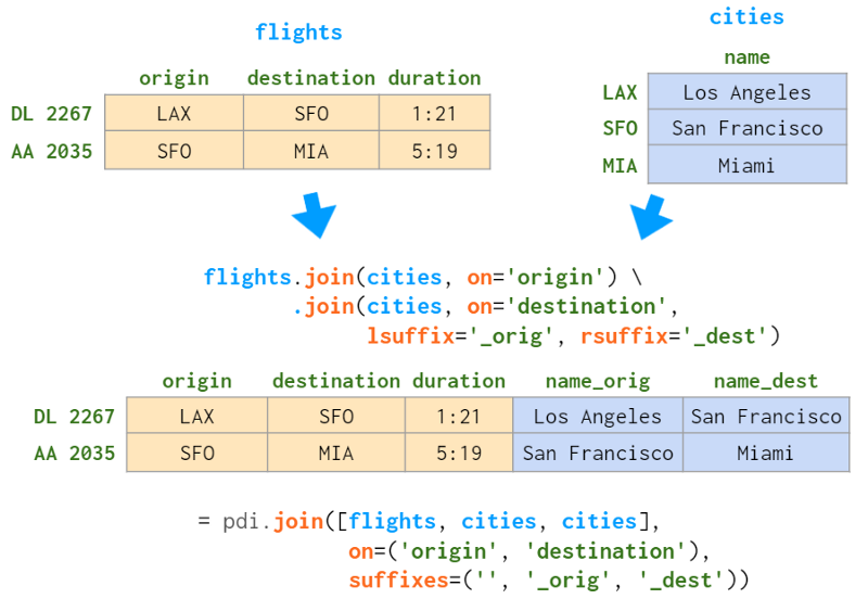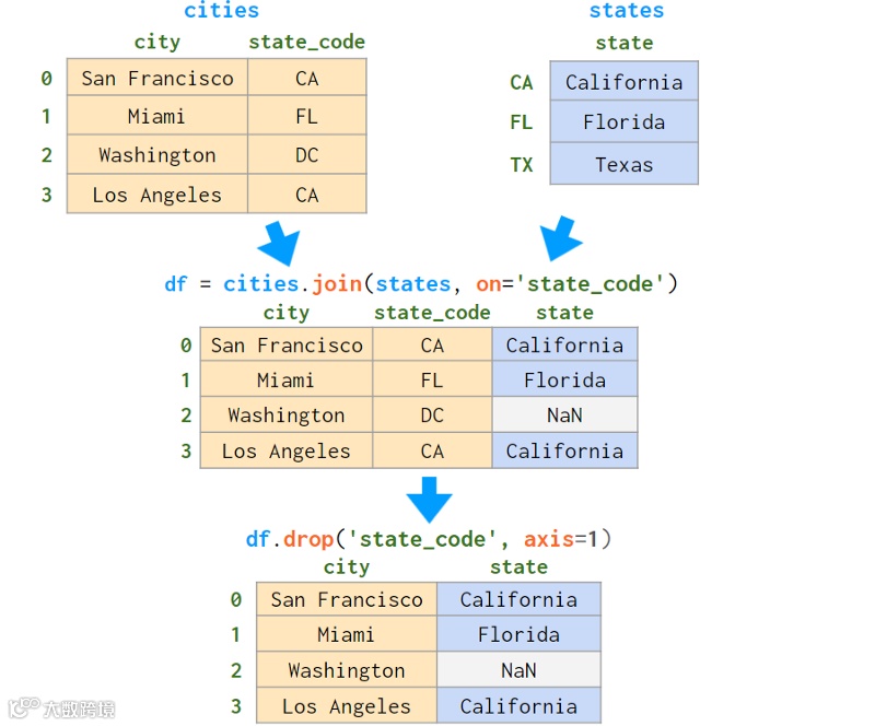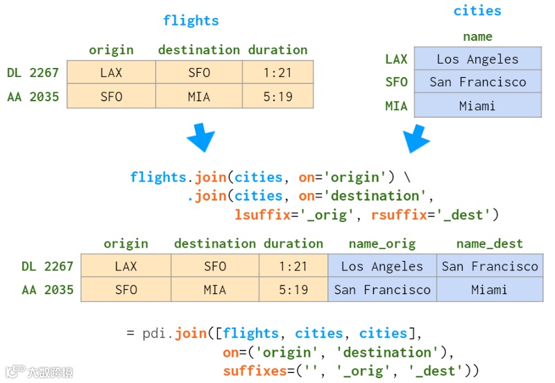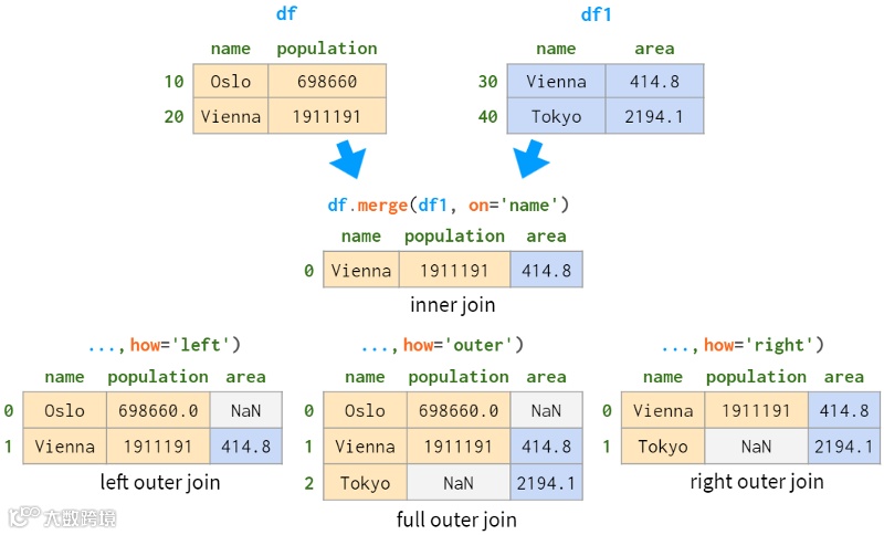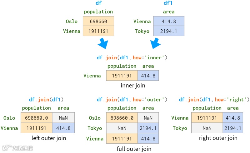 Pandas join具有所有熟悉的“内”、“左”、“右”和“全外部”连接模式。