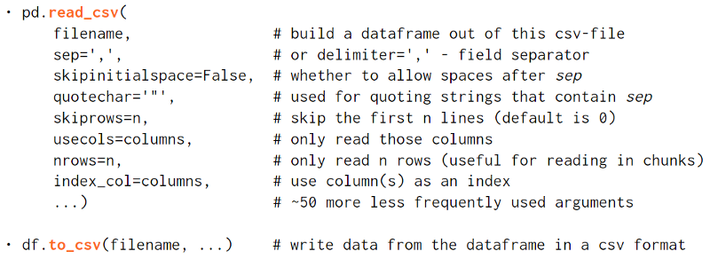 Pandas可以以完全自动化的方式将具有多重索引的DataFrame写入CSV文件:df.to_csv('df.csv ')。但是在读取这样的文件时,Pandas无法自动解析多重索引,需要用户的一些提示。例如,要读取具有三层高列和四层宽索引的DataFrame,你需要指定pd.read_csv('df.csv', header=[0,1,2], index_col=[0,1,2,3])。