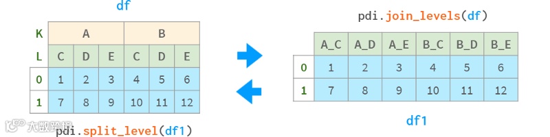 split_level(obj, sep=’_’, names=None)将索引拆分回多索引