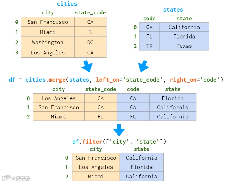 5. 一个用于.query方法的迷你语言:df.query(' state=="Oregon" or city=="Portland" ')。