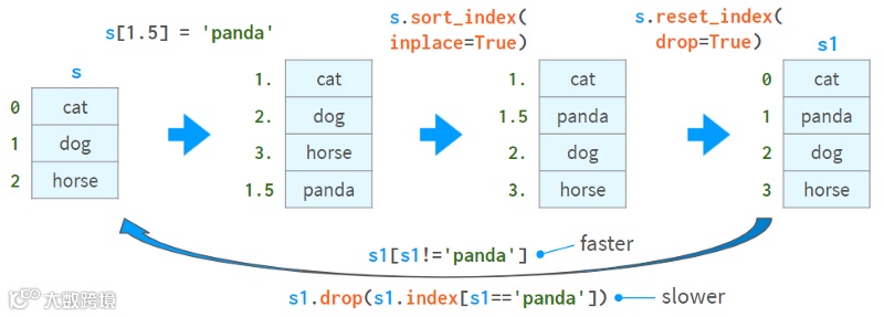 如果你不熟悉Pandas,你可能想知道为什么Pandas自己没有做到这一点?好吧,对于非数字标签,有一点很明显:为什么(以及如何)Pandas在删除一行后,会重新标记所有后续的行?对于数值型标签,答案就有点复杂了。
