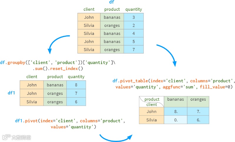 Pandas用df.pivot_table将分组和旋转结合在一个工具中。