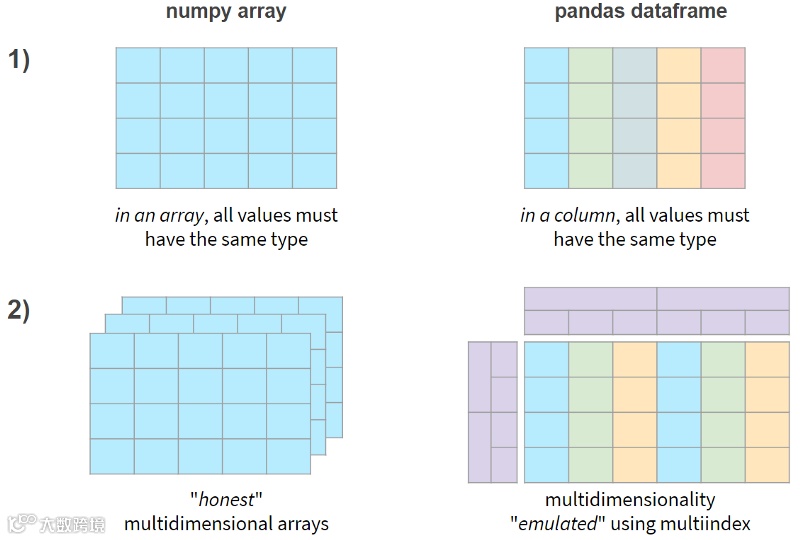 简而言之,NumPy和Pandas的两个主要区别如下: