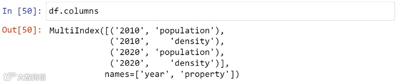 3.可以为pd创建别名。idx=pd.IndexSlice;df.loc [:, idx[:, ' population ']]