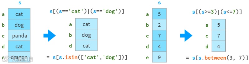 它们还支持布尔索引(使用布尔数组进行索引),如下图所示: