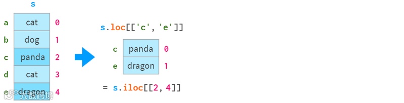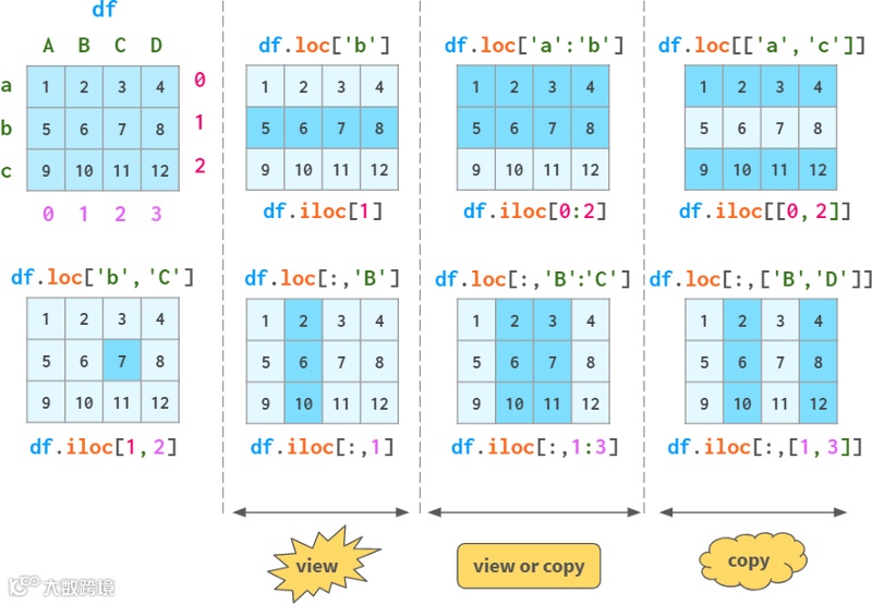 为了解决这些问题,Pandas还有两种“风格”的方括号,你可以在下面看到: