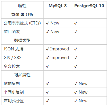 在这些版本之前,人们普遍认为,PostgreSQL 在功能集表现更出色,也因其“学院派”风格而备受称赞,MySQL 则更善长大规模并发读/写。