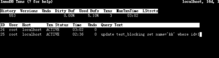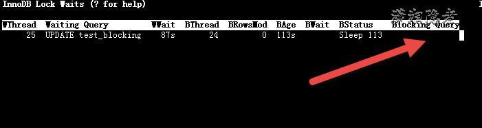 如下所示,Innotop工具很多情况下也不能定位到阻塞的语句(Blocking Query), 也仅仅能获取一些锁相关信息