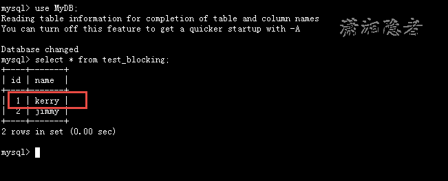 mysql> update test_blocking set name='kk' where id=1;