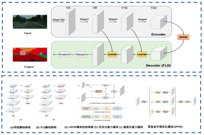 FLD灵活调整解码模块中通道数,平衡编码模块和解码模块的计算量,使得整个模型更加高效;UAFM模块效地加强特征表示,更好地提升了模型的精度;SPPM模块减小了中间特征图的通道数、移除了跳跃连接,使得模型性能进一步提升。