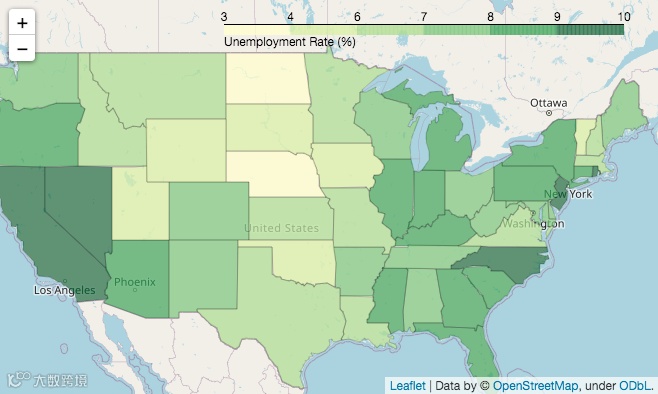 矩形热力图,矩阵中的每个值都被表示为一个颜色数据。