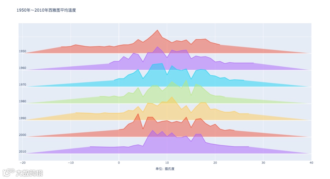 # 使用Plotly绘制脊线图,每个轨迹对应于特定年份的温度分布