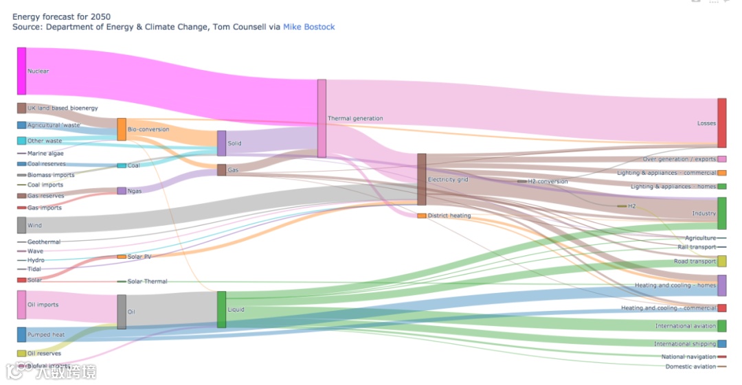 fig.update_layout(title_text="Energy forecast for 2050<br>Source: Department of Energy & Climate Change, Tom Counsell via <a href='https://bost.ocks.org/mike/sankey/'>Mike Bostock</a>",