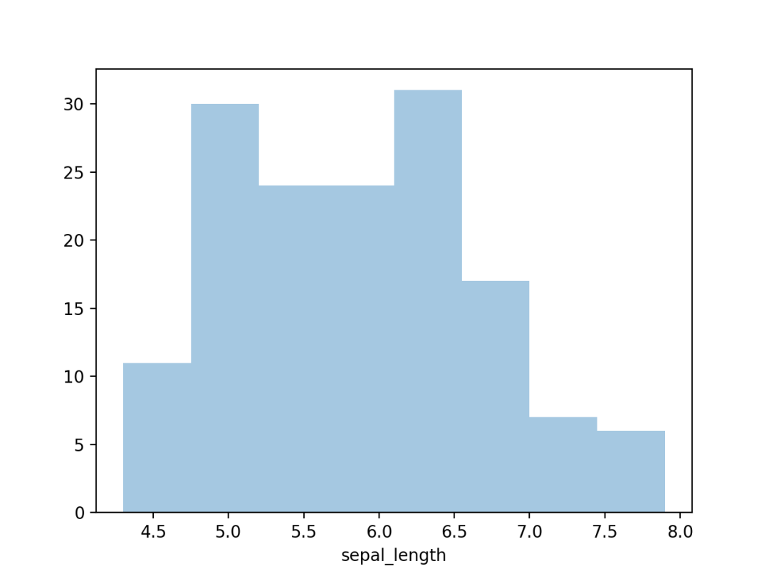 sns.distplot(a=df["sepal_length"], hist=True, kde=False, rug=False)
