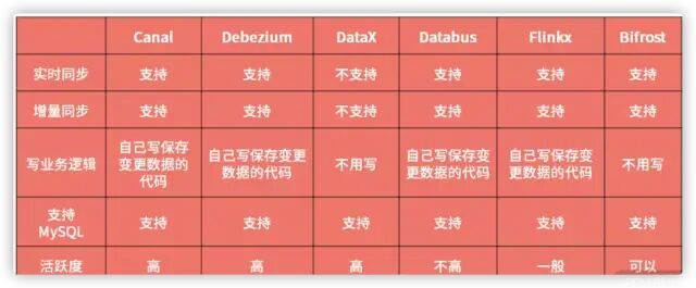 监听binlog日志的工具有很多,前面介绍过,比如阿里的canal,还有其他的开源中间件可供选择,如下: