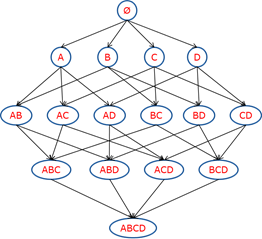 频繁集挖掘面临的最大难题就是项集的组合爆炸,如下图:
