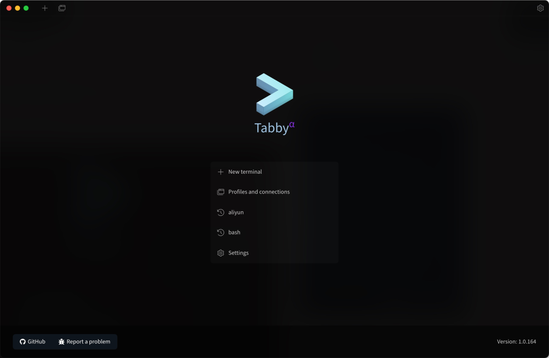 安装好后,将 Tabby 打开,它的页面是酱紫的,很简洁,很酷炫。