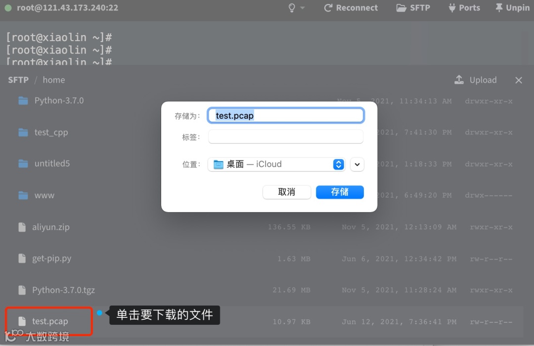 如果你想把服务器上的文件传输到本地电脑,你只需要找到服务器的文件,然后点击,就会弹出保存文件的提示。