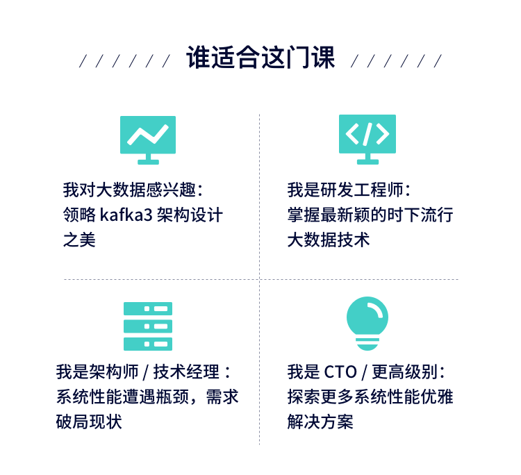 为了帮助广大Java开发工程师、大数据研发工程师、架构师对Kafka3.0的新特性有更加深入的认识并能够做到灵活运用,高效提升工作效率,前中国移动研究院大数据工程师王超老师打造了《Kafka3新特性及源码剖析》在线专栏课,2天时间,带你掌握时下最前沿的大数据核心技术,独家揭秘Kafka3的新特性,深入解读源码设计,解析元数据一致性算法,领略Kafka3架构设计之美,获悉系统性能提升的破局之道。