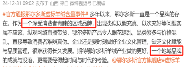 在这个事件中也有人把“鄂尔多斯”解读为一个区域品牌。