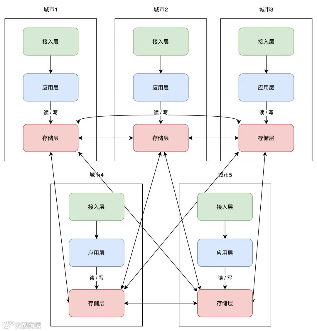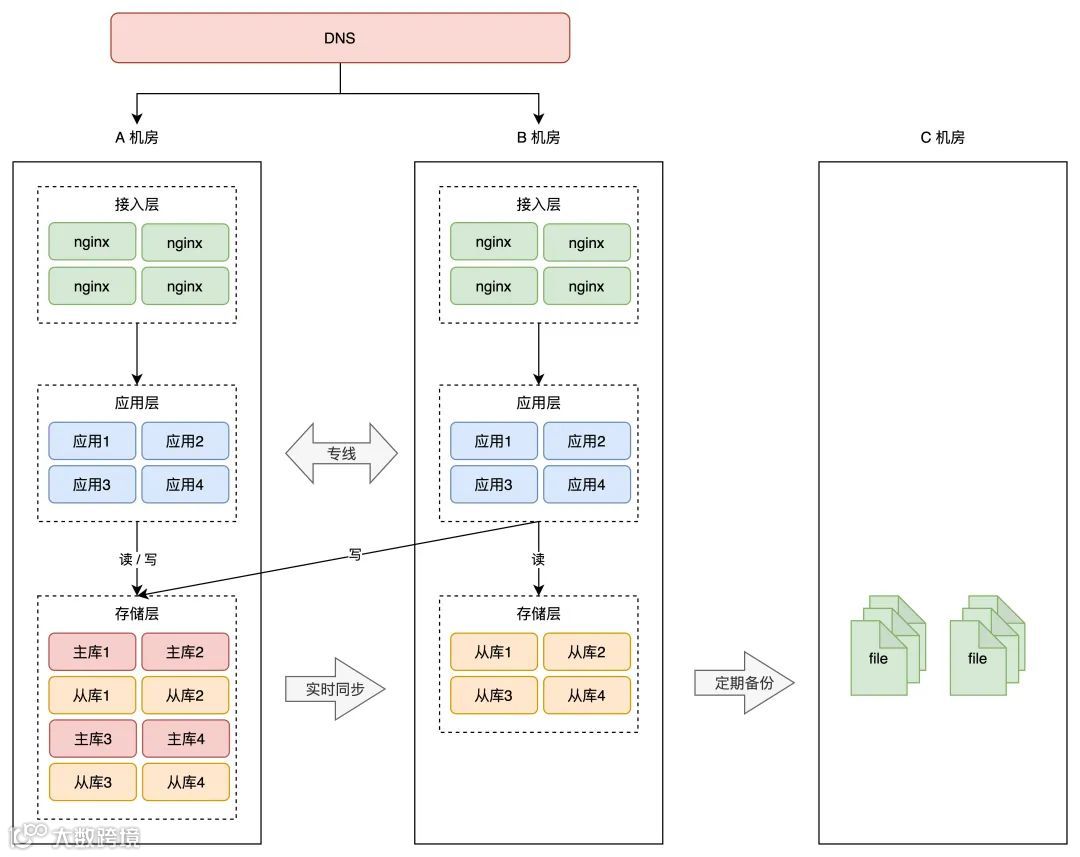安全起见,每个机房在写存储时,还需要有一套机制,能够检测「数据归属」,应用层操作存储时,需要通过中间件来做「兜底」,避免不该写本机房的情况发生。(篇幅限制,这里不展开讲,理解思路即可)