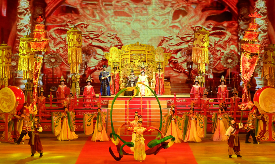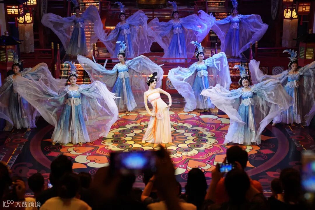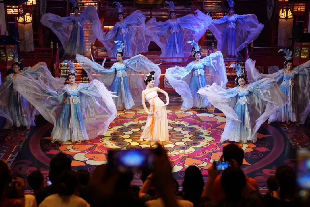 游客在长安十二时辰主题街区观看《霓裳羽衣舞》。新华社记者 邵瑞 摄