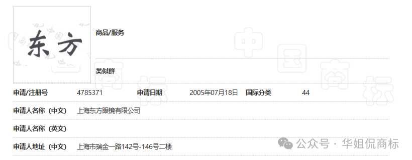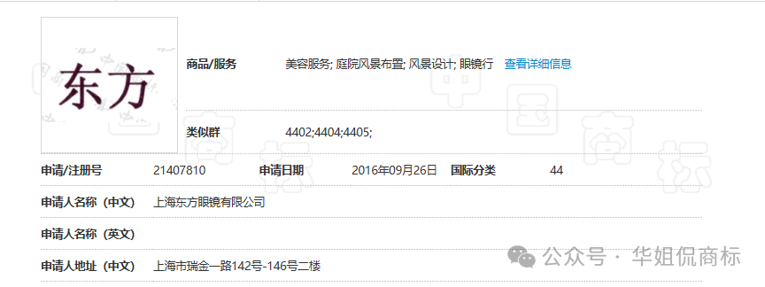 就是这枚商标的失败,导致广州东方眼镜公司以后申请“东方”字眼商标,再也没有成功过。