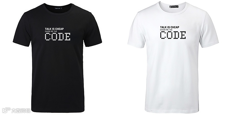 之前为范品社宣传程序员T恤时,就有很多位反馈想要一款 “ Talk is cheap, show me the code ” 。这款T恤真的就有了,而且有两个图案可以选。(PS. 如果你希望设计制作你喜欢的题材,可以在评论里留言或者向范品社的客服留言哦)
