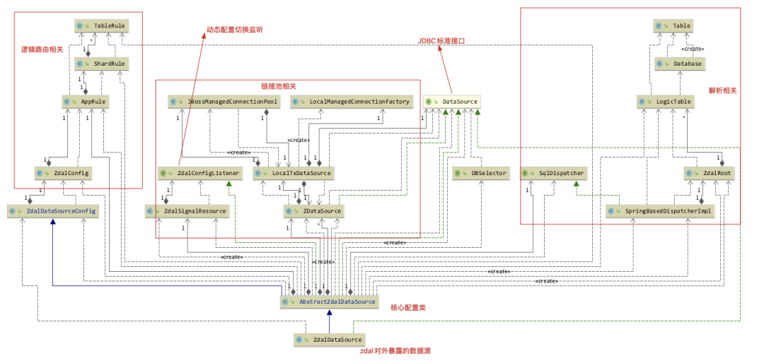 如图片被压缩看不清,后台回复<zdal类图>获取