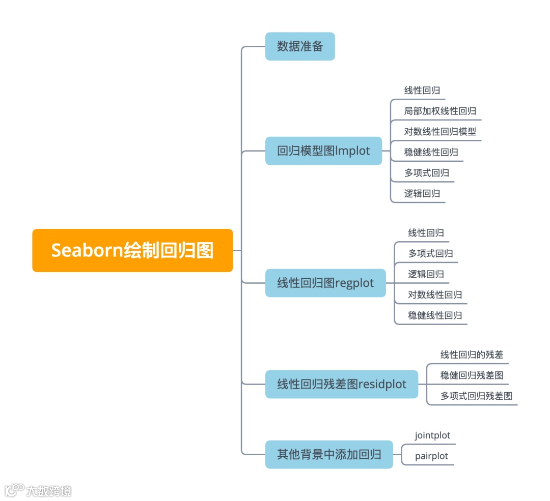 本文主要介绍回归模型图lmplot、线性回归图regplot,这两个函数的核心功能很相似,都会绘制数据散点图,并且拟合关于变量x,y之间的回归曲线,同时显示回归的95%置信区间。