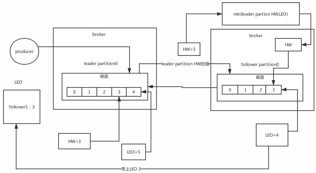 核心的概念:LEO,HW LEO:是跟offset偏移量有关系。