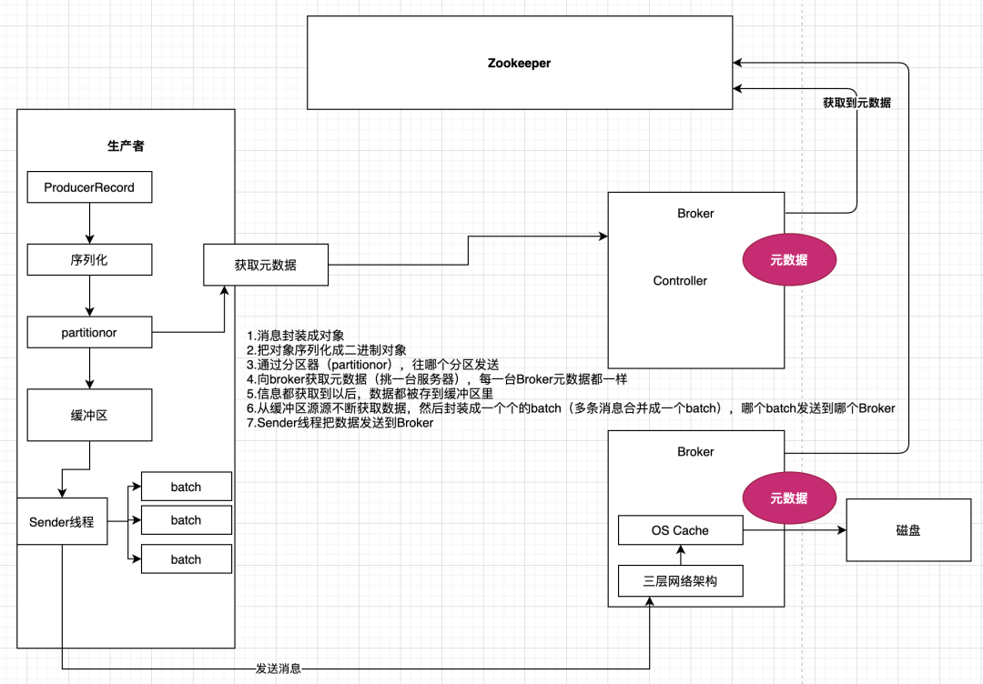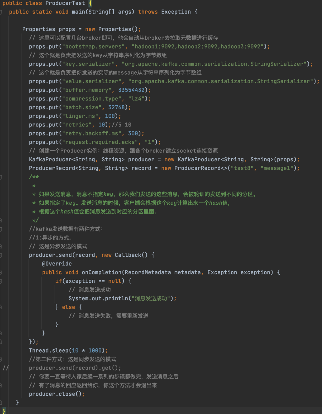 消息乱序消息重试是可能导致消息的乱序的,因为可能排在你后面的消息都发送出去了。所以可以使用"max.in.flight.requests.per.connection"参数设置为1, 这样可以保证producer同一时间只能发送一条消息。两次重试的间隔默认是100毫秒,用"retry.backoff.ms"来进行设置 基本上在开发过程中,靠重试机制基本就可以搞定95%的异常问题。