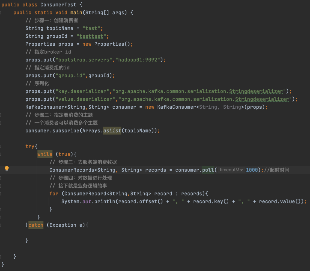 heartbeat.interval.ms:consumer心跳时间间隔,必须得与coordinator保持心跳才能知道consumer是否故障了, 然后如果故障之后,就会通过心跳下发rebalance的指令给其他的consumer通知他们进行rebalance的操作 session.timeout.ms:kafka多长时间感知不到一个consumer就认为他故障了,默认是10秒 max.poll.interval.ms:如果在两次poll操作之间,超过了这个时间,那么就会认为这个consume处理能力太弱了,会被踢出消费组,分区分配给别人去消费,一般来说结合业务处理的性能来设置就可以了。