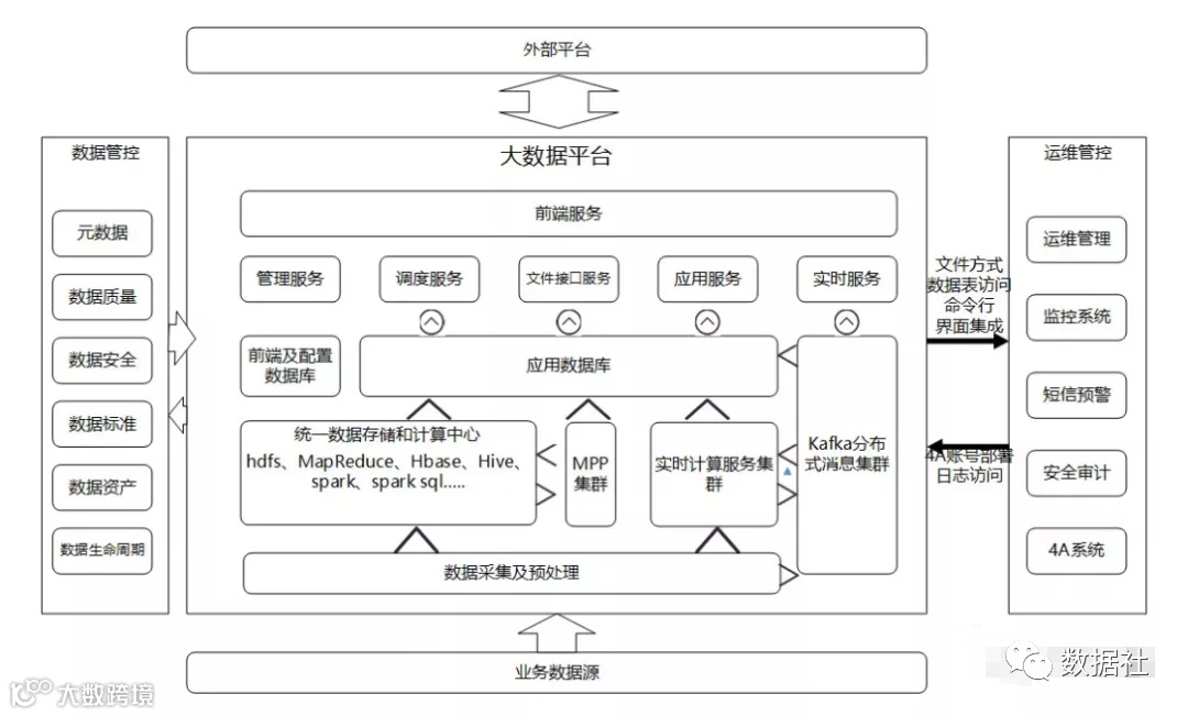 现在的大数据架构多了一些东西,比如数据采集Flume、消息对垒kafka、计算引擎MR、Spark以及实时计算框架,这些都是以前传统数据仓库架构下没有的。