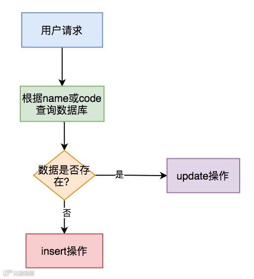 通常情况下,在保存数据的接口中,我们为了防止产生重复数据,一般会在insert前,先根据name或code字段select一下数据。如果该数据已存在,则执行update操作,如果不存在,才执行 insert操作。