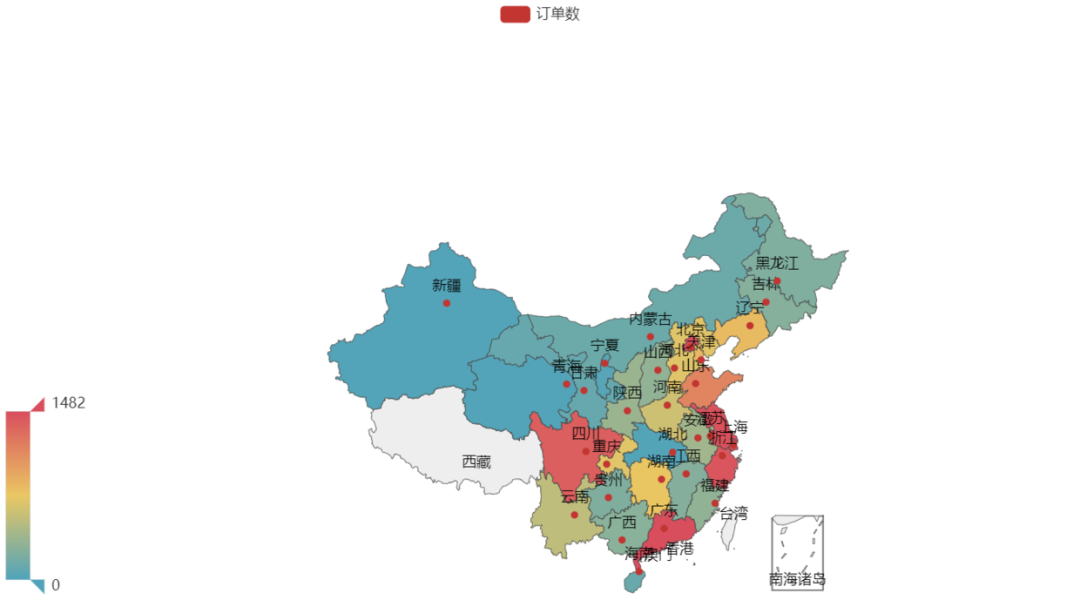 小结 2 :地区对订单数量影响较大,一般较发达地区订单数较大,边远地区较小。这里可能需要具体分析每个地区的商品种类、消费群体以及优惠政策,快递等原因。可以根据原因进一步提高其他地区的订单数量和销售金额。