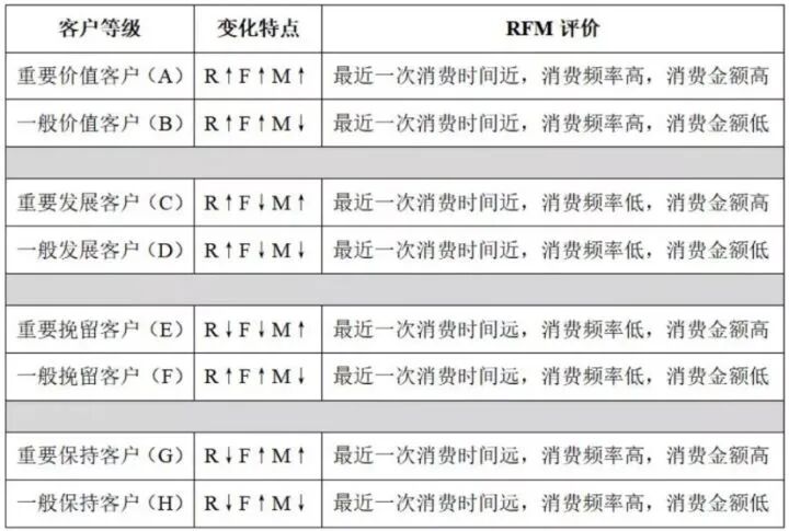 其他很多算法模型、机器学习模型,往往通过聚类进行用户的分层,对于业务来讲,不是很好解释。但RFM模型分成的8个用户类别,是非常好理解的。
