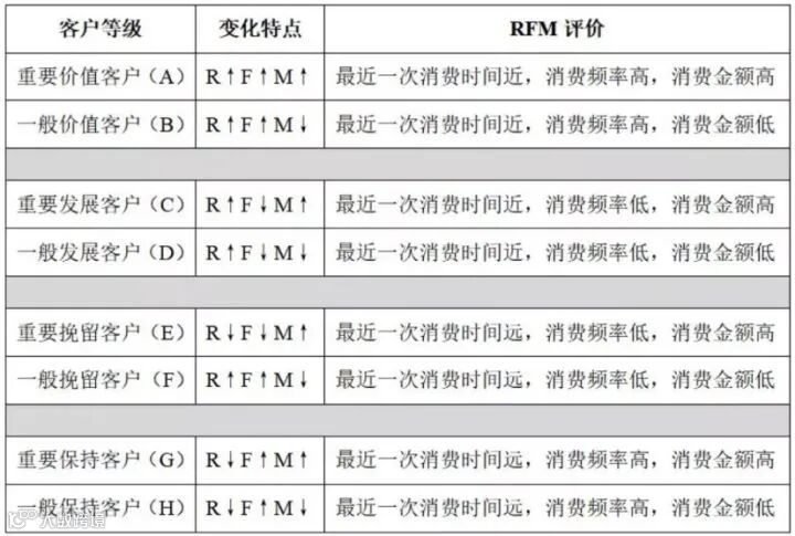 最典型的是就是快消品和耐消品的差别。对于耐消品而言,RFM分析并不是一个很行之有效的模型。例如冰箱的购买,用户购买一台冰箱后可能十几年都没有购买了,这是没办法用RFM分析的。如果强搬硬套,是没有任何意义的。