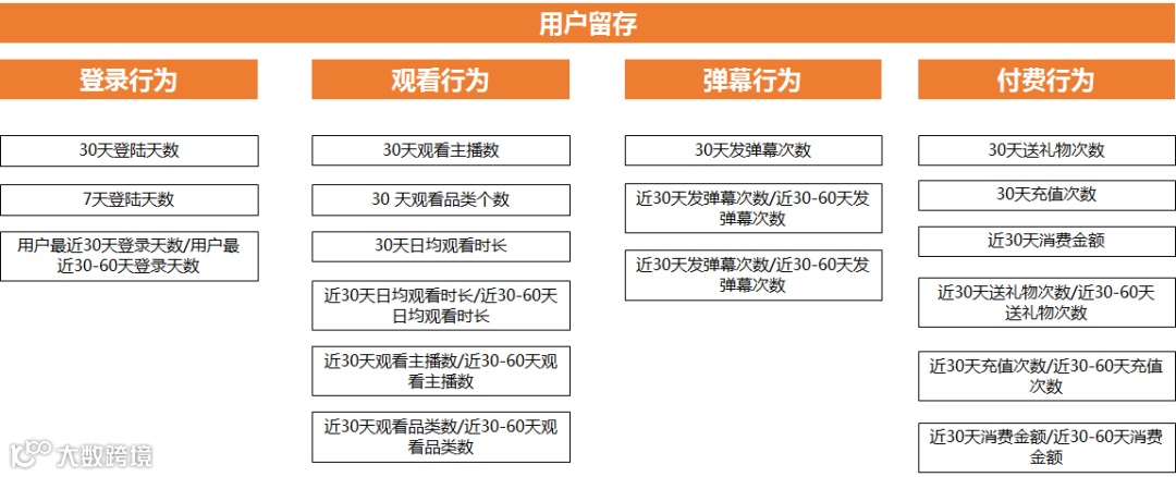 那么就得到 用户id + 行为数据+ 是否留存 这几个指标组成的数据