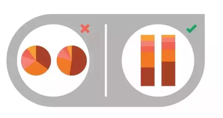 在人们多选的问题上就会出现比例的重叠,不同选项的百分比之和大于一。为了避免这种情况,不能直接把比例做成统计图。相较于呈现数值,有些图更着重于表现部分与整体的关系。