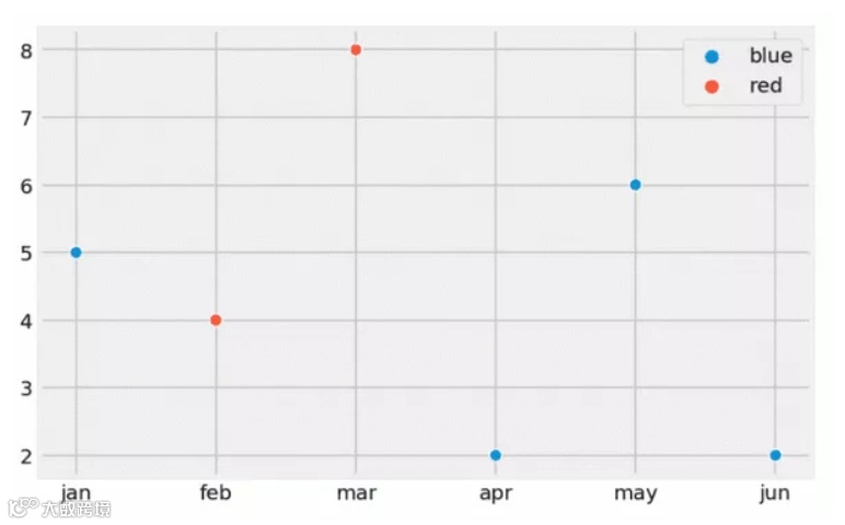 在某些情况下,在一段时间或一系列的值中,我们可能测量了不同种类的物体。例如,假设我们测量 6 个月以来狗和猫的体重。在实验结束时,我们想画出每只动物的体重,分别用蓝色和红色区分猫和狗。