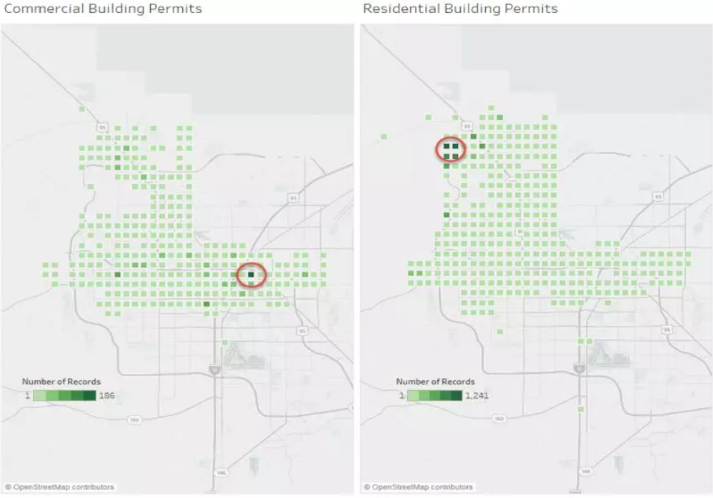 大小可以帮助强调重要信息并添加上下文提示,使用大小来表示值配合地图使用的效果也非常好。如果您的可视化中有多个大小相同的数据点,它们会混在一起,很难区分值。