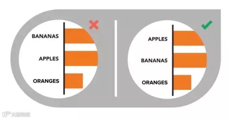 数据类别按字母顺序,大小顺序,或价值进行排序,以一种合乎逻辑的和直观的方式来引导读者了解数据。
