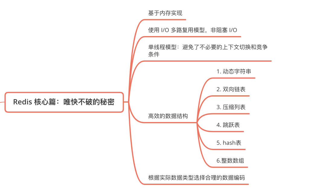 Redis 系列篇章围绕如下思维导图展开,这次从 《Redis 唯快不破的秘密》一起探索 Redis 的核心知识点。