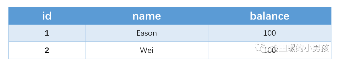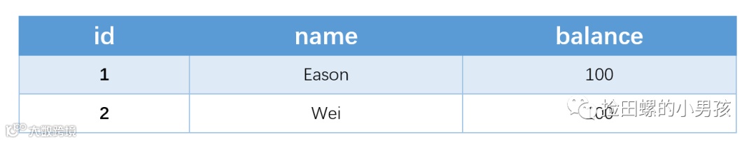 //id是自增主键,name是非唯一索引,balance普通字段