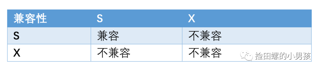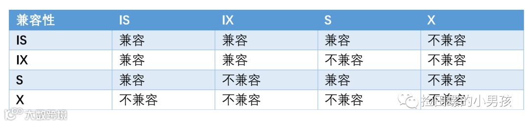 锁模式兼容矩阵(横向是已持有锁,纵向是正在请求的锁):