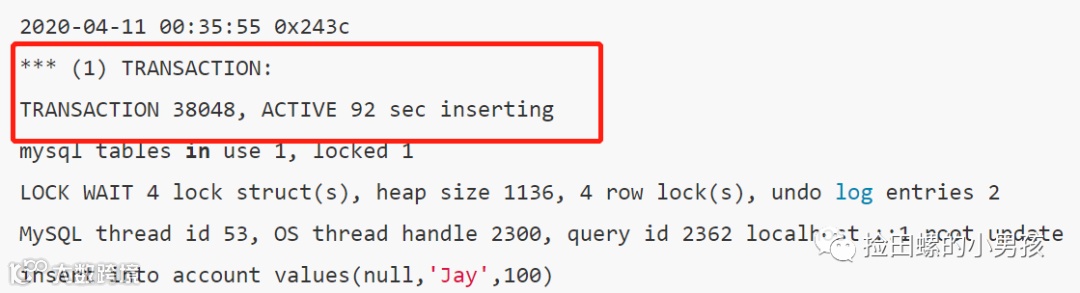 间隙锁的事务数据(关键词:gap before rec),记录如下: