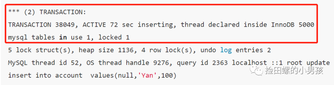 5lockstruct(s), heap size 1136, 4 row lock(s), undo log entries 2