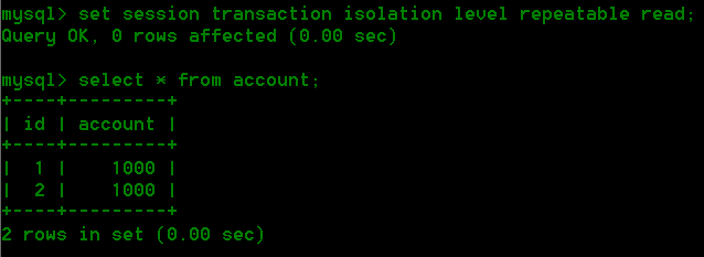 set session transaction isolation level read uncommitted;start transaction;select * from account;